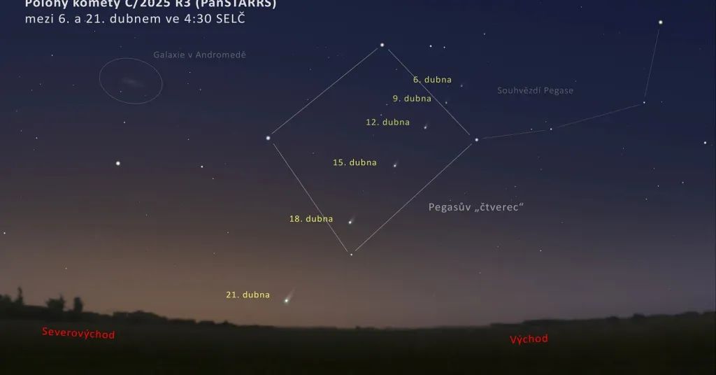 Právě v těchto dnech vrcholí astronomické jaro 2026 ve velkém stylu. Zatímco mise Artemis II fenomenálně prolétá okolo Měsíce, k Zemi se blíží kometa C/2025 R3 (PanSTARRS). Ta každým dnem zjasňuje a v následujícím týdnu pravděpodobně překoná hranici viditelnosti pouhýma očima. Máme jen dva týdny na to, abychom tohoto posla z hlubin vesmíru spatřili, než navždy zmizí v mezihvězdném prostoru.