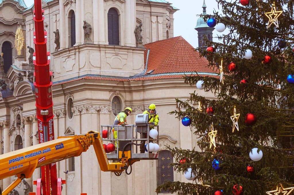 Od noci na úterý stojí na Staroměstském náměstí v Praze vánoční strom. Šestadvacet metrů vysoký smrk z Děčínska, který musel být o čtyři metry zkrácen, vztyčili pracovníci firmy Technologie hlavního města Prahy (THMP). Během dne začne jeho zdobení a v sobotu se obyvatelé a návštěvníci metropole mohou těšit na první slavnostní rozsvícení.