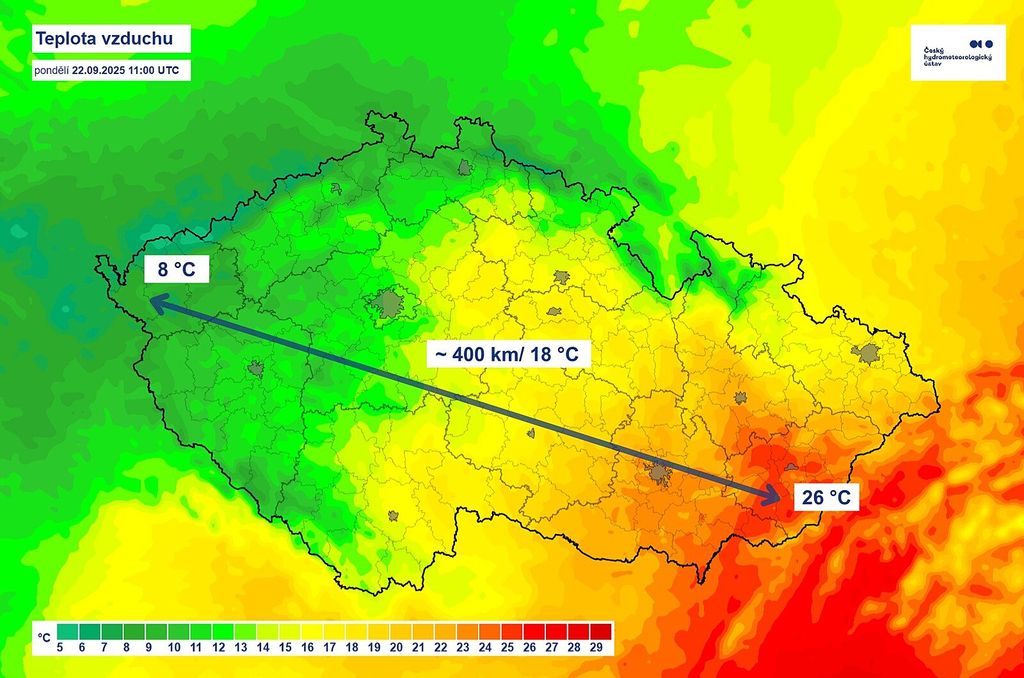 ❗Mimořádné rozdíly v teplotách v rámci ČR, až 18 °C.