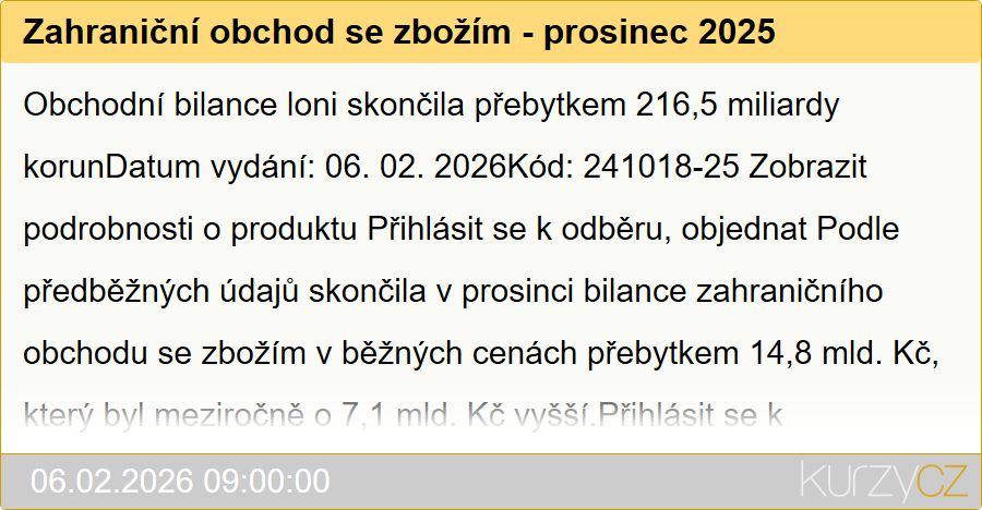 5Foto© zpravy.kurzy.czZahraniční obchod se zbožím - prosinec 2025